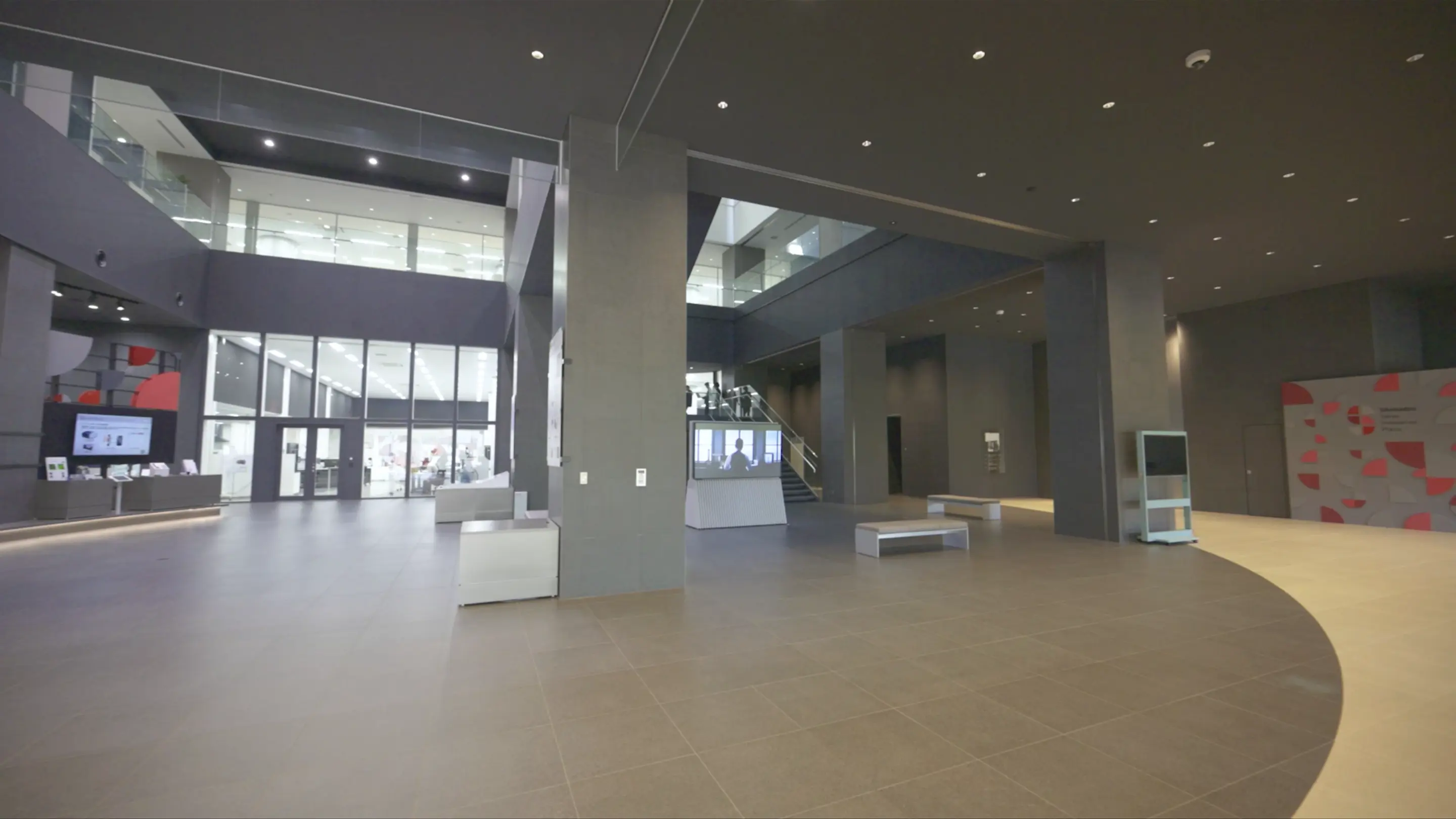 Shimadzu Tokyo Innovation Plazaは、1階から3階までフロアごとに、研究分野によって分けられたラボがある。3階にはオフィスエリアも併設され、4階の最上階にはセミナーや学会などの会場となるホールが完備されている。「魅せるラボ」というコンセプトを体現するのは、中央吹き抜けに位置する屋内階段とGlobe(球体)だ。館内全体を「魅せる」ためにラボを巡る動線を建物の中央に据え、その直上にGlobe(球体)を配置した。来訪者は屋内階段を上がりながら、すべてのラボを見渡すことができるつくりになっている。